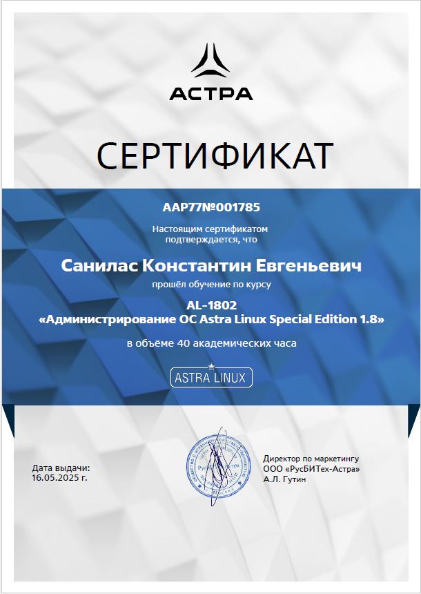 AL — 1804 Сетевое администрирование ОС Astra Linux Special Edition 1.8 | 40 часов | |